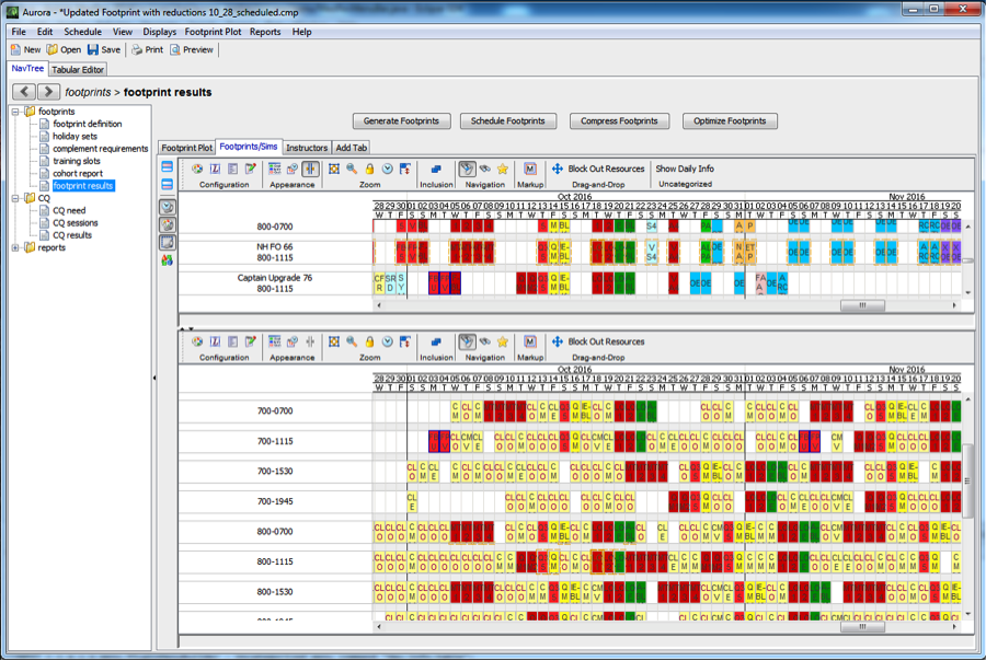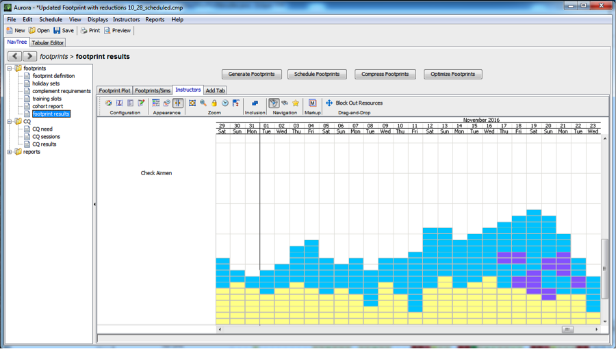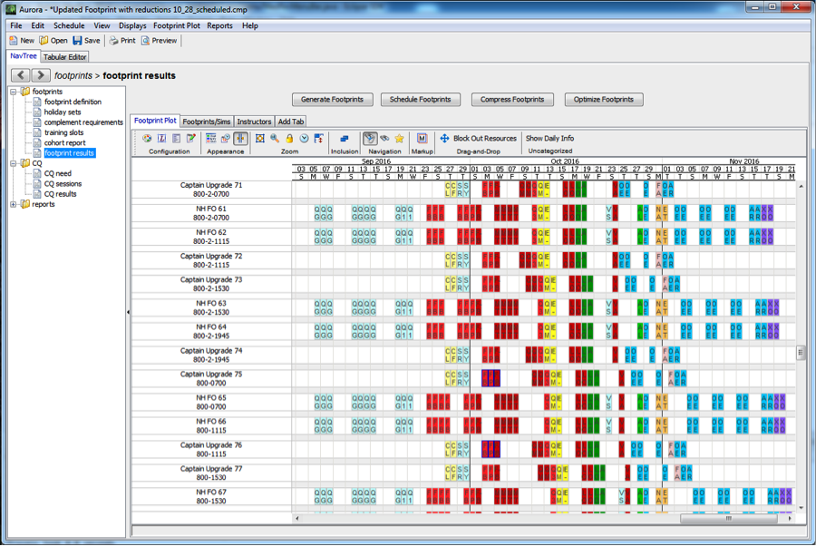 Pilot training involves a variety of specialized functionality and logic. The scheduling and logic enforcement was historically a slow and painstaking process, with a significant amount of manual cross-checking. Aurora automates the process, while allowing the user to make edits and adjustments. Aurora can then update the schedule, taking those changes into account.